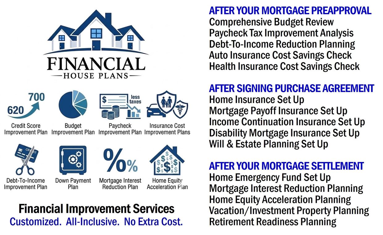 Our unique Financial House Plans process combines a detailed mortgage preapproval evaluation with a comprehensive financial analysis. This combination of services provides our clients with complete confidence while they are home hunting. More importantly, they have total financial peace of mind after settlement!